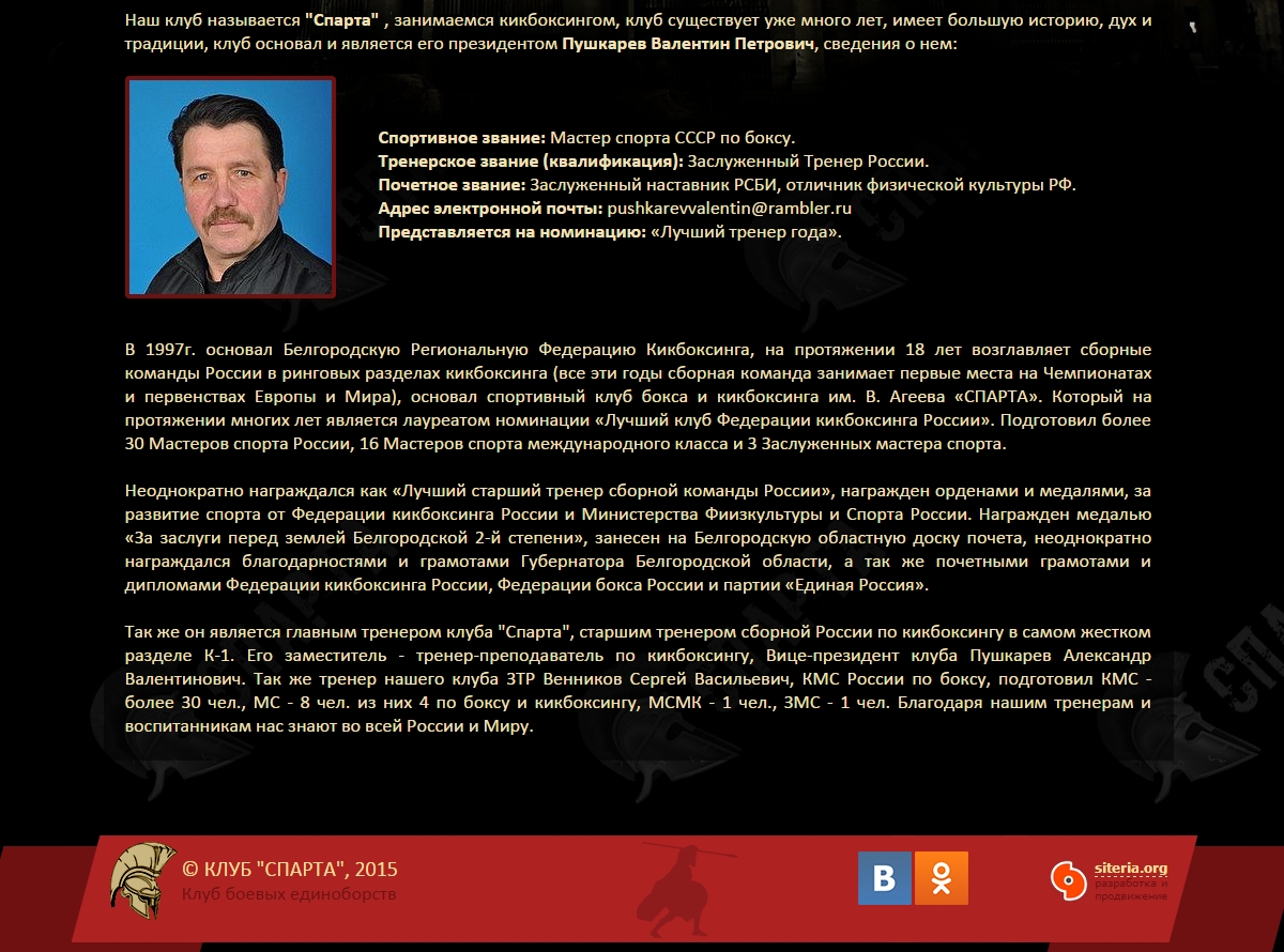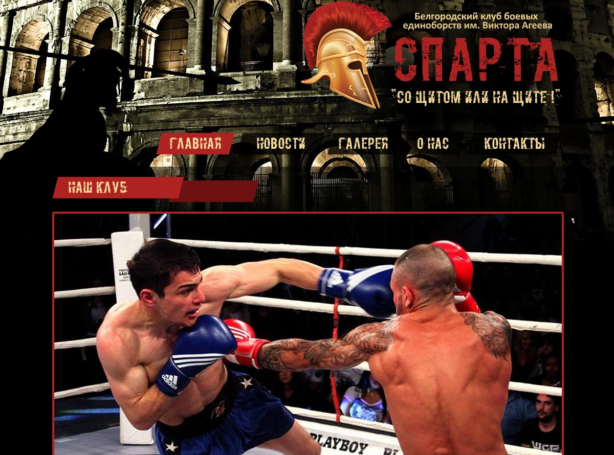 Необходимо было разработать сайт для Белгородского клуба «СПАРТА». Дизайн был подобран в соответствующем стиле.