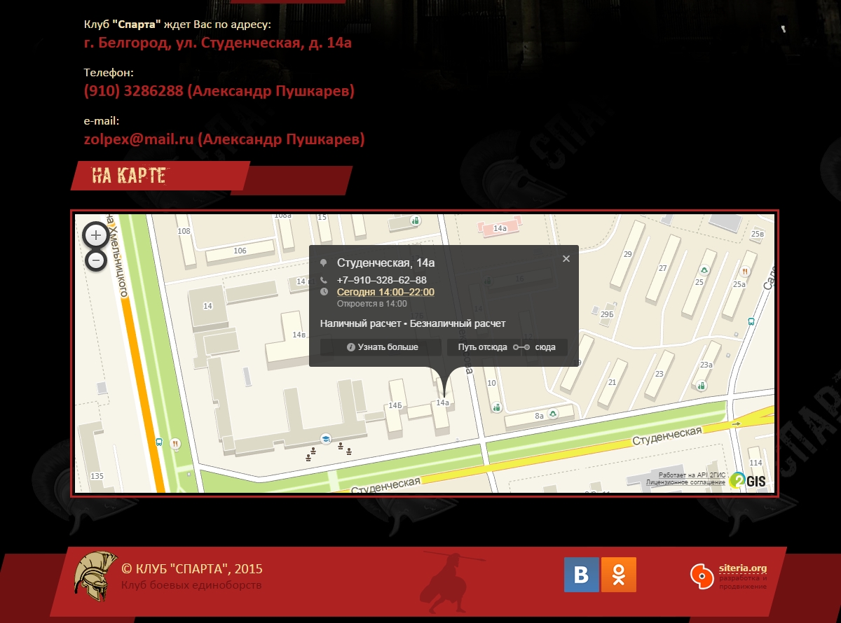 Задача: создать сайт в Белгороде для клуба боевых единоборств.