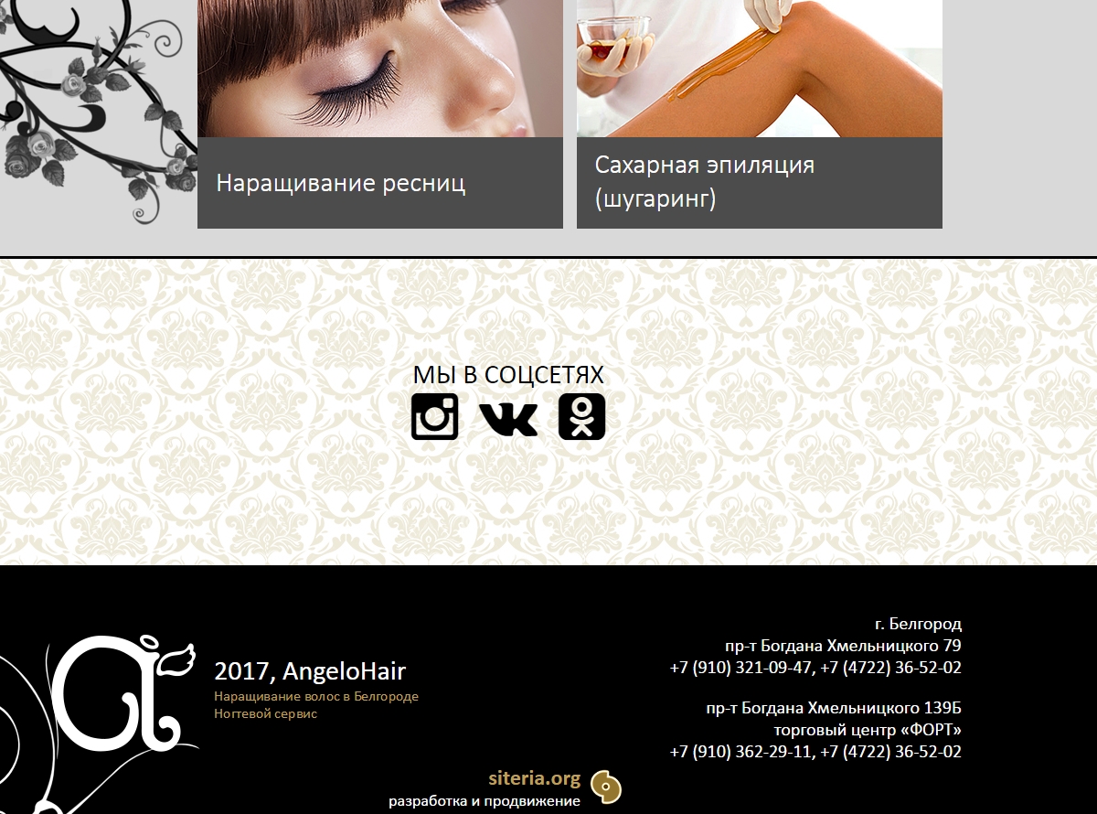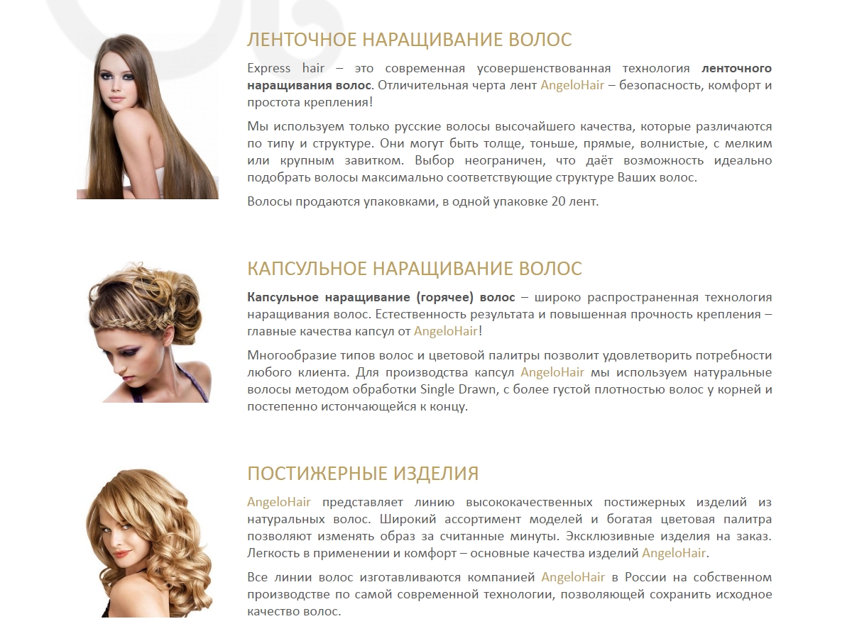 Необходимо было создать сайт для студии наращивания волос. На сайте представлены услуги компании, контактная информация. Присутствует портфолио и страница с отзывами.