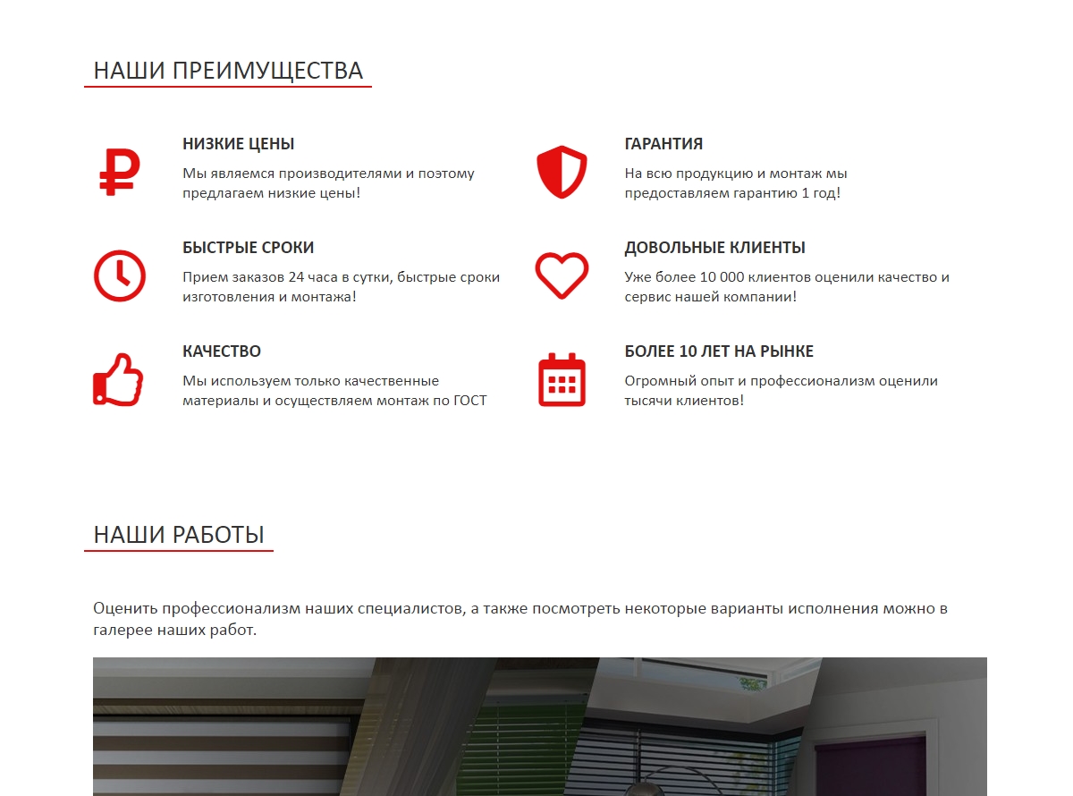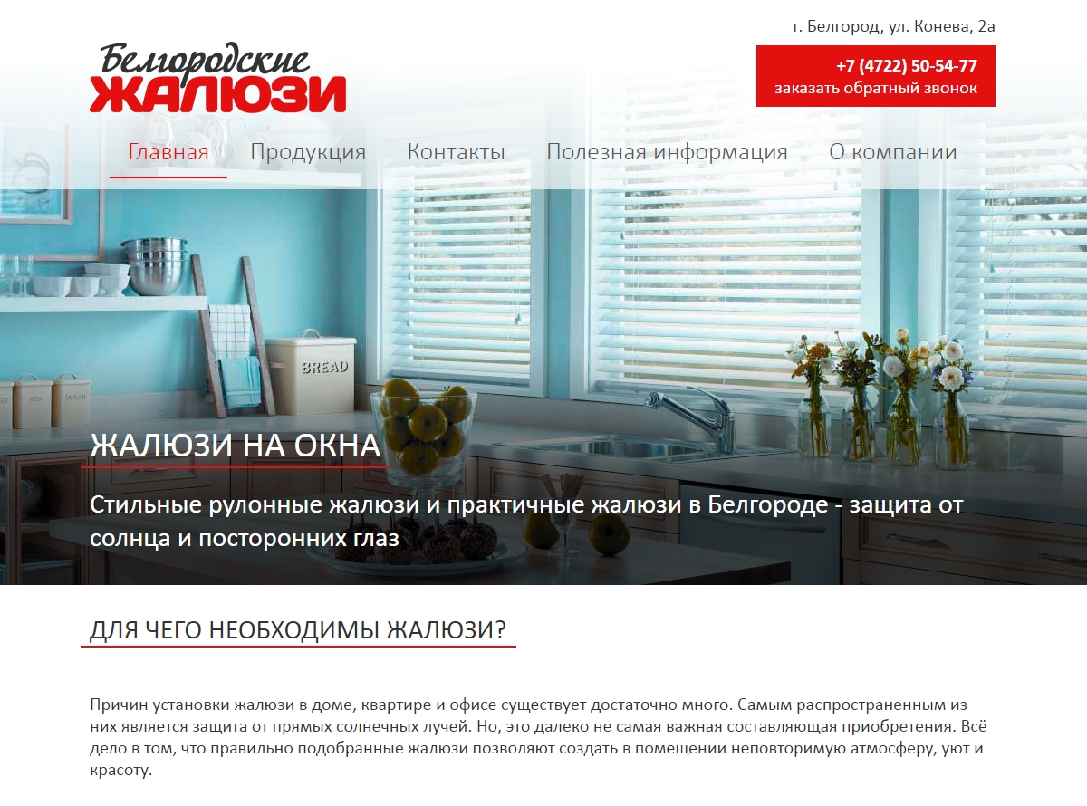 Необходимо было разработать сайт для компании, специализирующейся на продаже и установке жалюзи. На сайте представлены услуги компании, контактная информация, а также каталог товаров. Сайт управляется через панель администрирования.