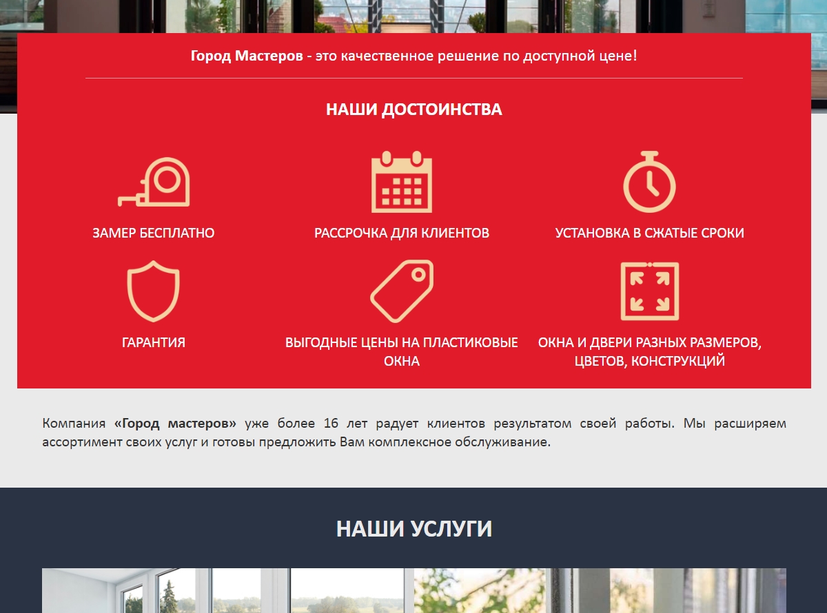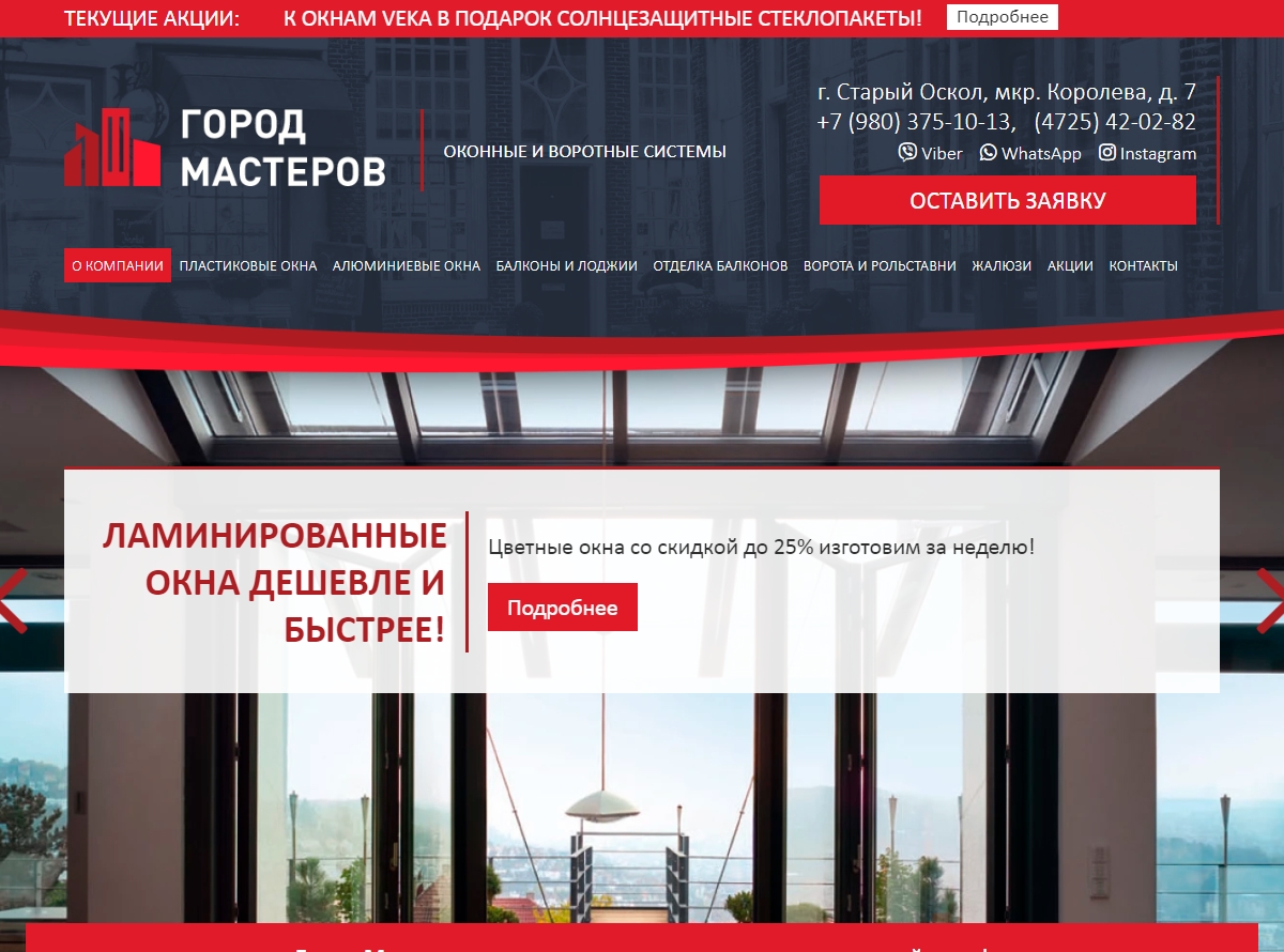 Необходимо было разработать сайт для оконной компании. Управление осуществляется через панель администрирования. Присутствует страница отзывов, а также обновляемая страница акций.