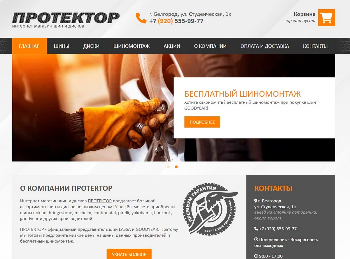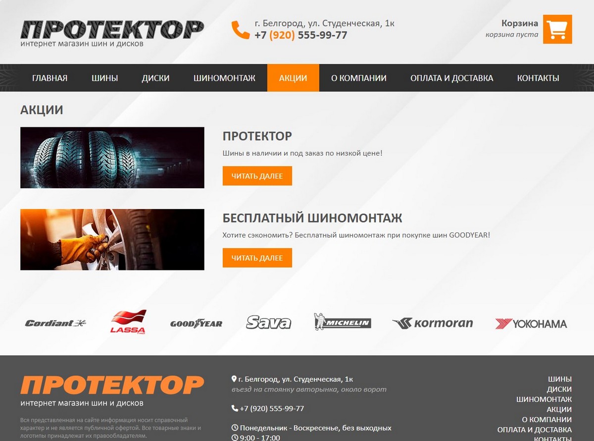 Необходимо было разработать сайт в формате интернет-магазина шин и дисков. Управление осуществляется через панель администрирования. Присутствует каталог шин и дисков, а также обновляемая страница акций.